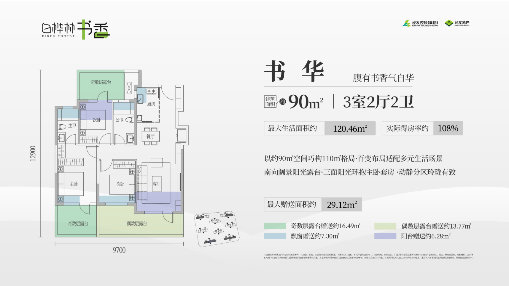 建筑面积: 90㎡(3房2厅2卫)